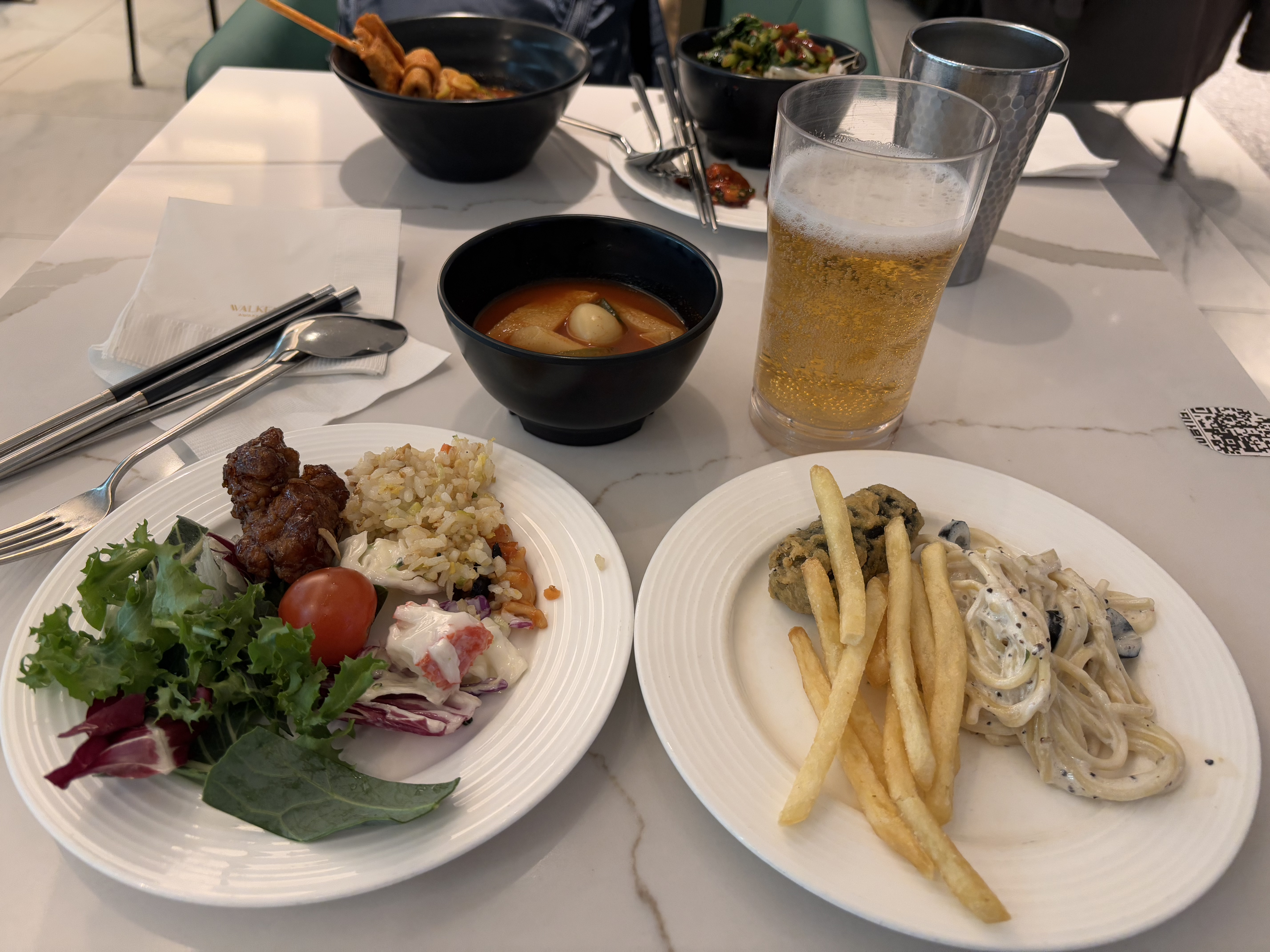 이곳에서 뷔페와 술을 주고 있어서 저녁 식사를 해결했다.