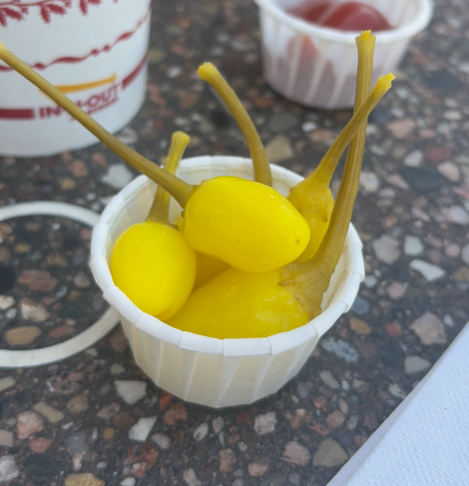그리고 인 앤 아웃 버거에서 먹을 수 있는 저 노란 고추 정말 맘에 들었다.