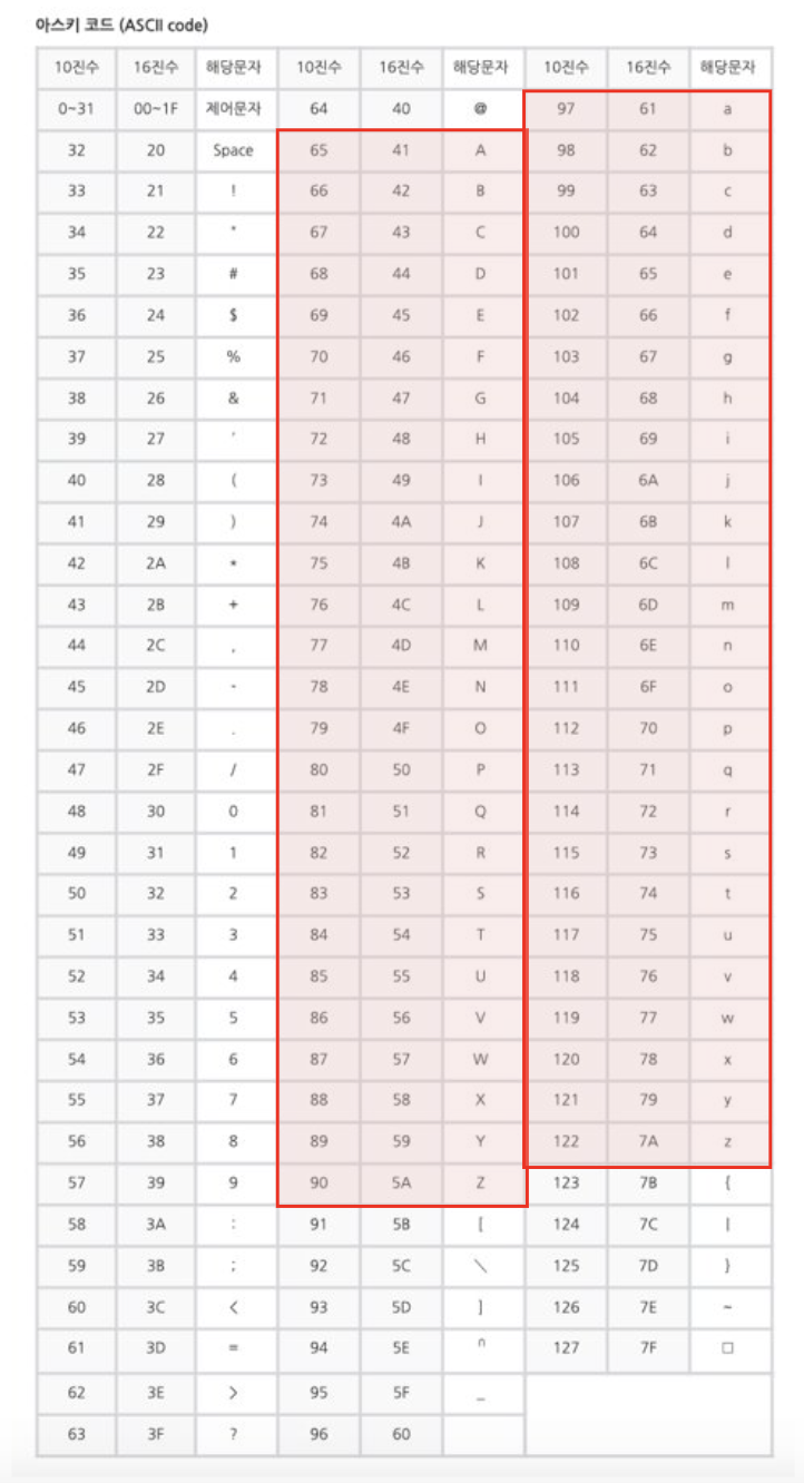 코딩 테스트 연습을 하다보면 종종 아스키 코드 값을 이용하는 경우가 생긴다.