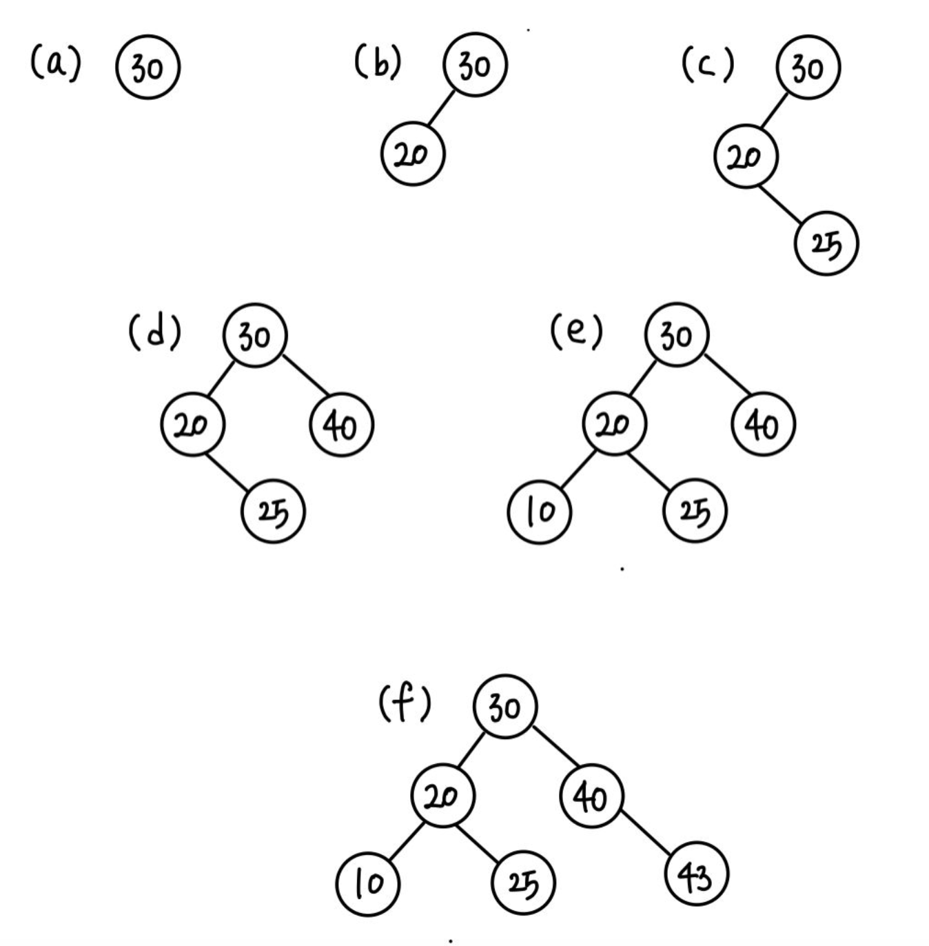 ③ 노드 N의 오른쪽 서브트리 모든 노드의 키 값은 노드 N의 키 값보다 커야 한다.