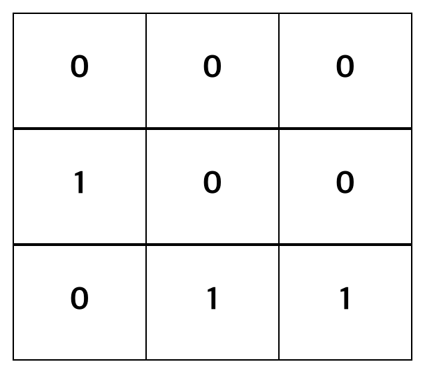 int[][] array = {{0, 0, 0}, {1, 0, 0}, {0, 1, 1}};